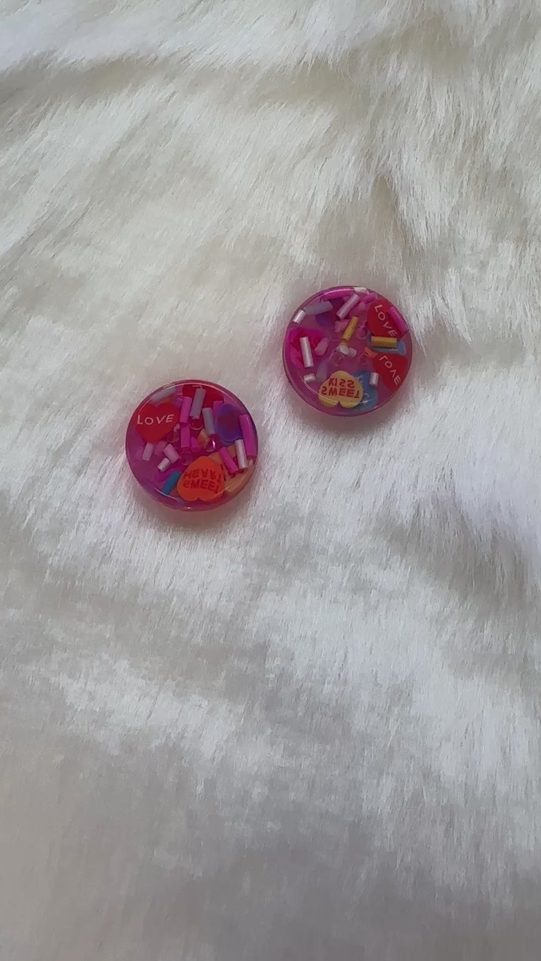 Handmade pink resin glitter buttons with sprinkles and love hearts. Available in 15mm 20mm, 25mm