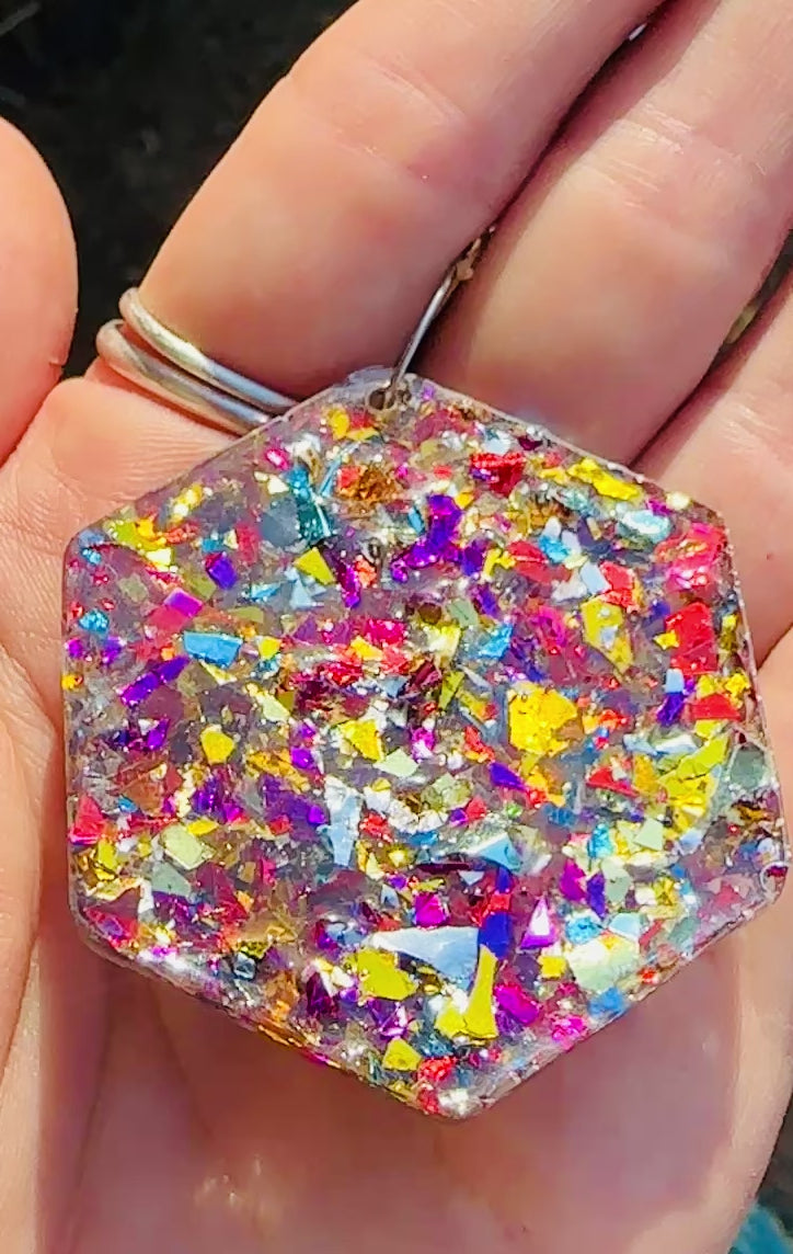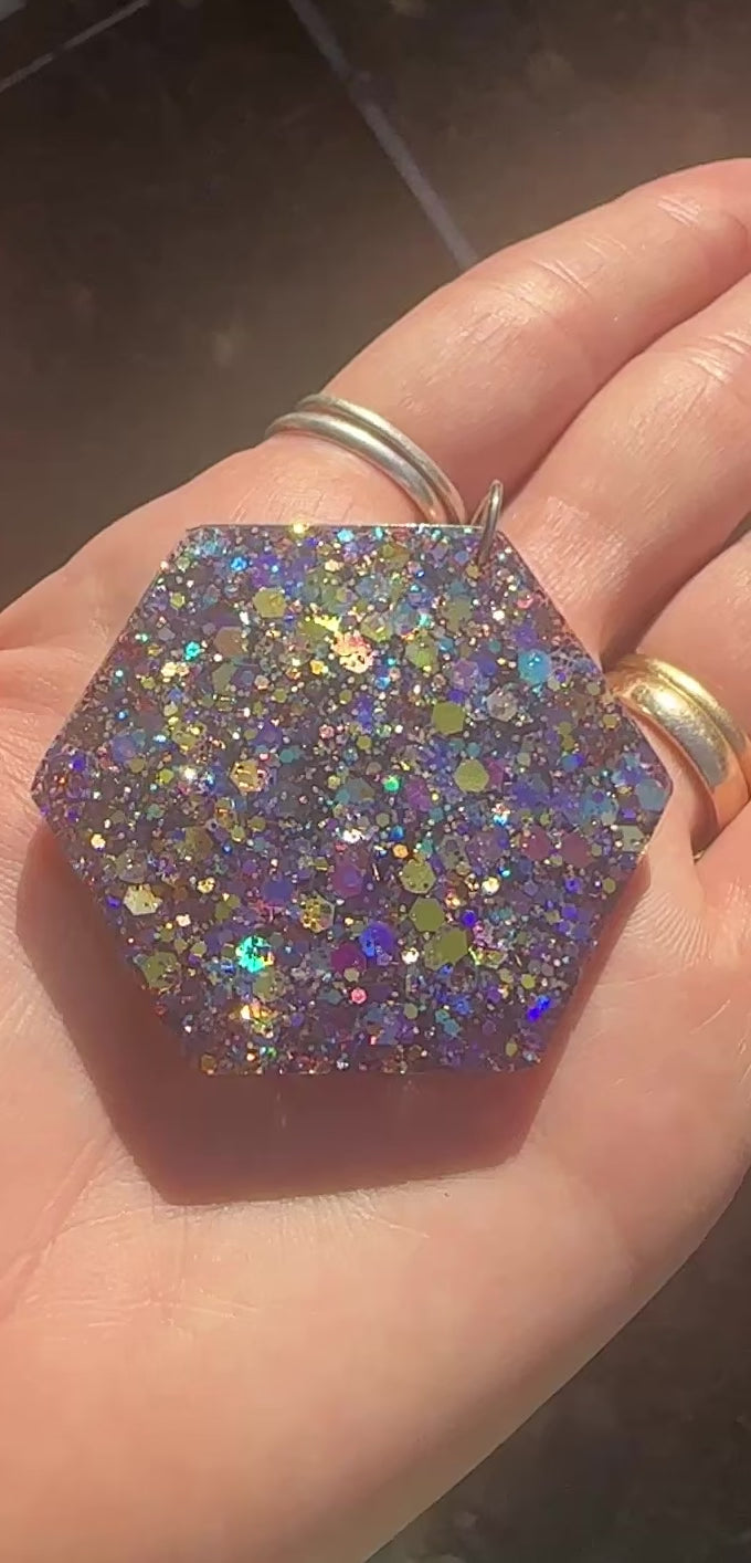 Choose your preferred text and glitter & text colour to create your own one-of-a-kind hexagonal earrings!