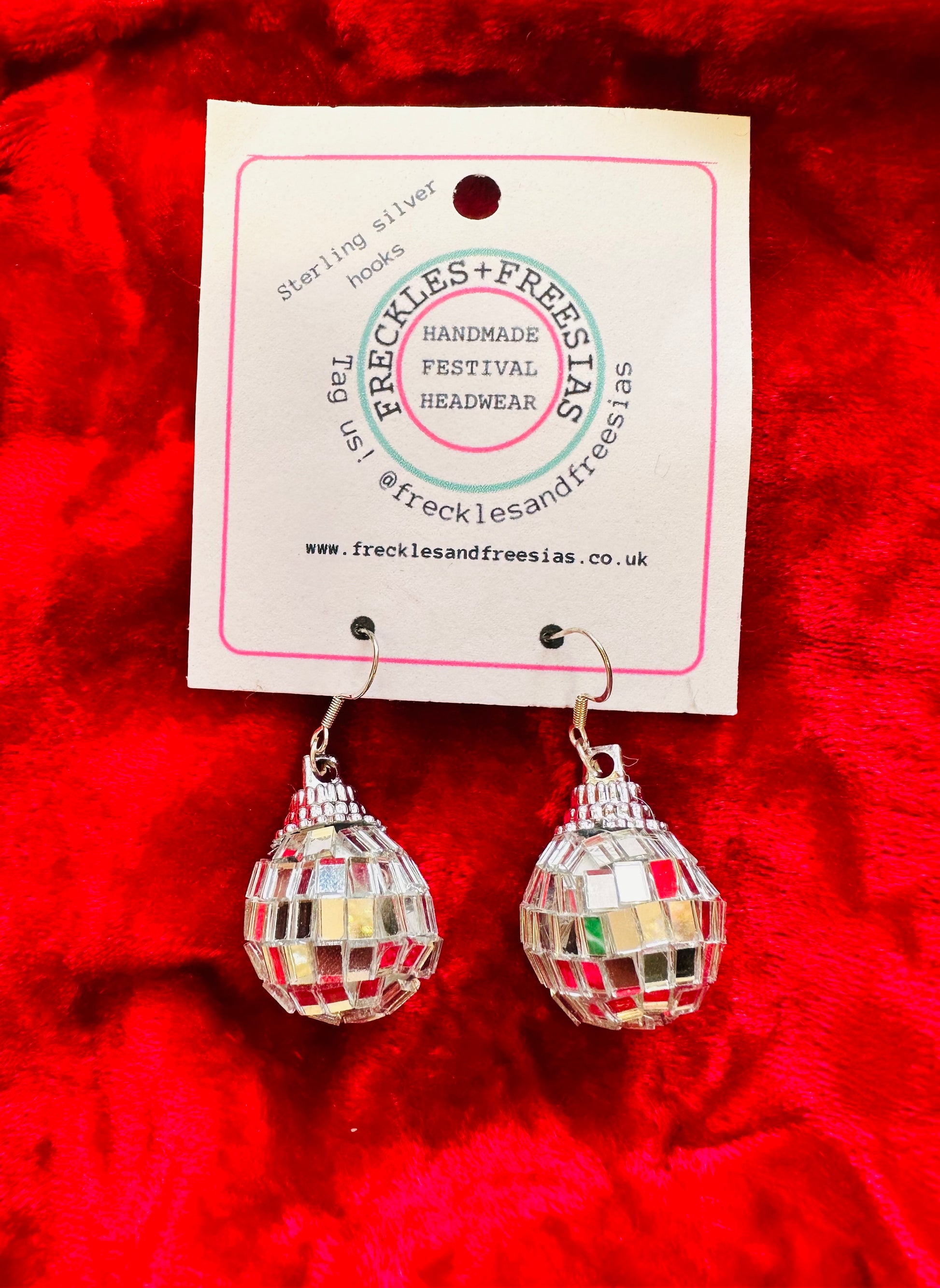 These little beauties are made with individual disco balls with sterling silver hooks (stamped 925).