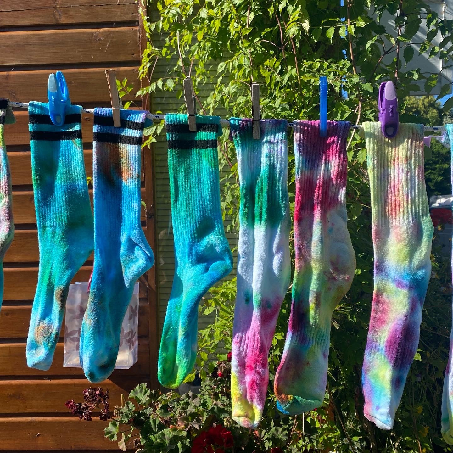 I use high quality cushioned socks and hand tie them in a variety colours. The perfect stocking filler! They're one size and fit big and little feet - absolutely perfect inside a pair of Docs!