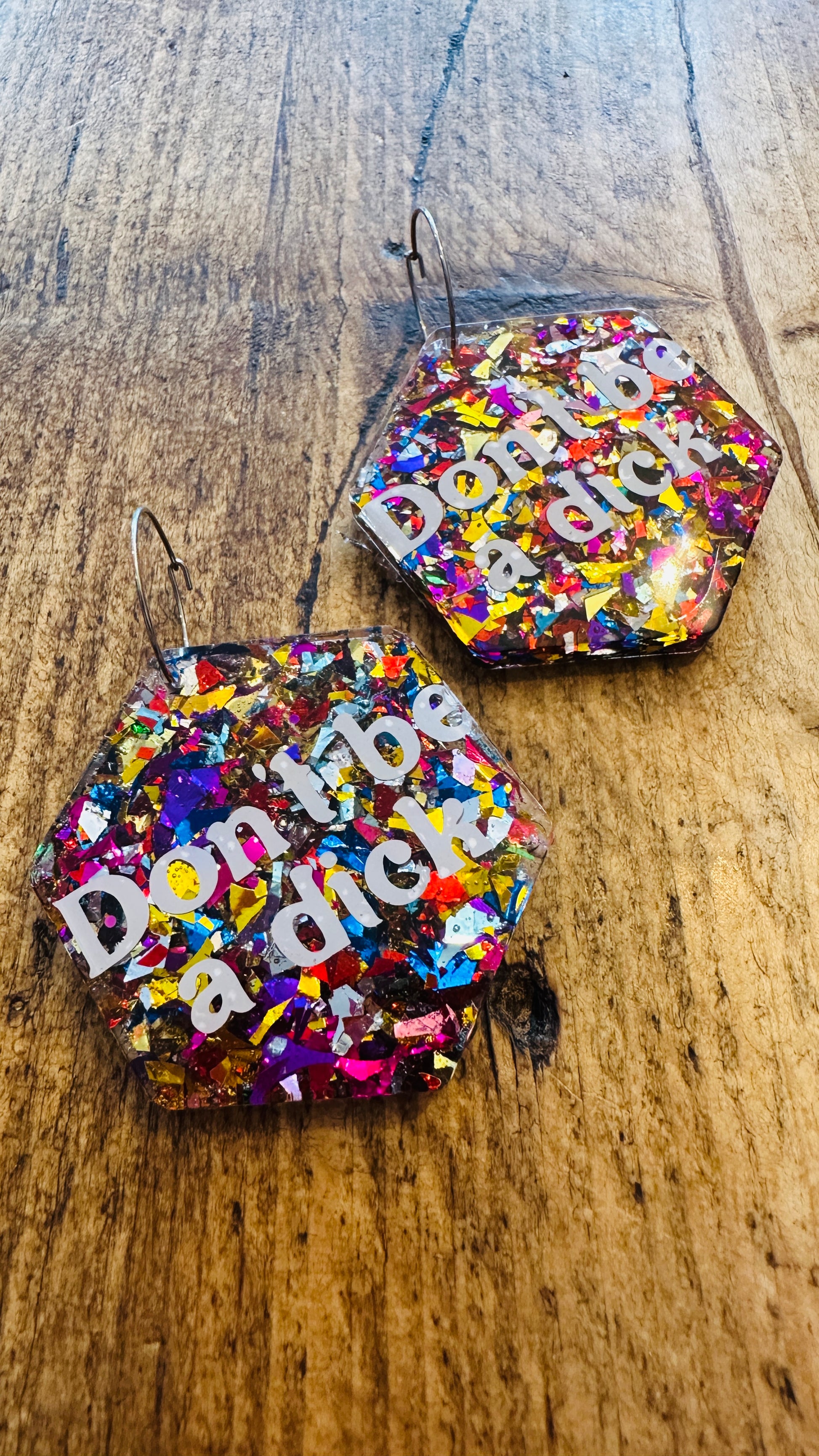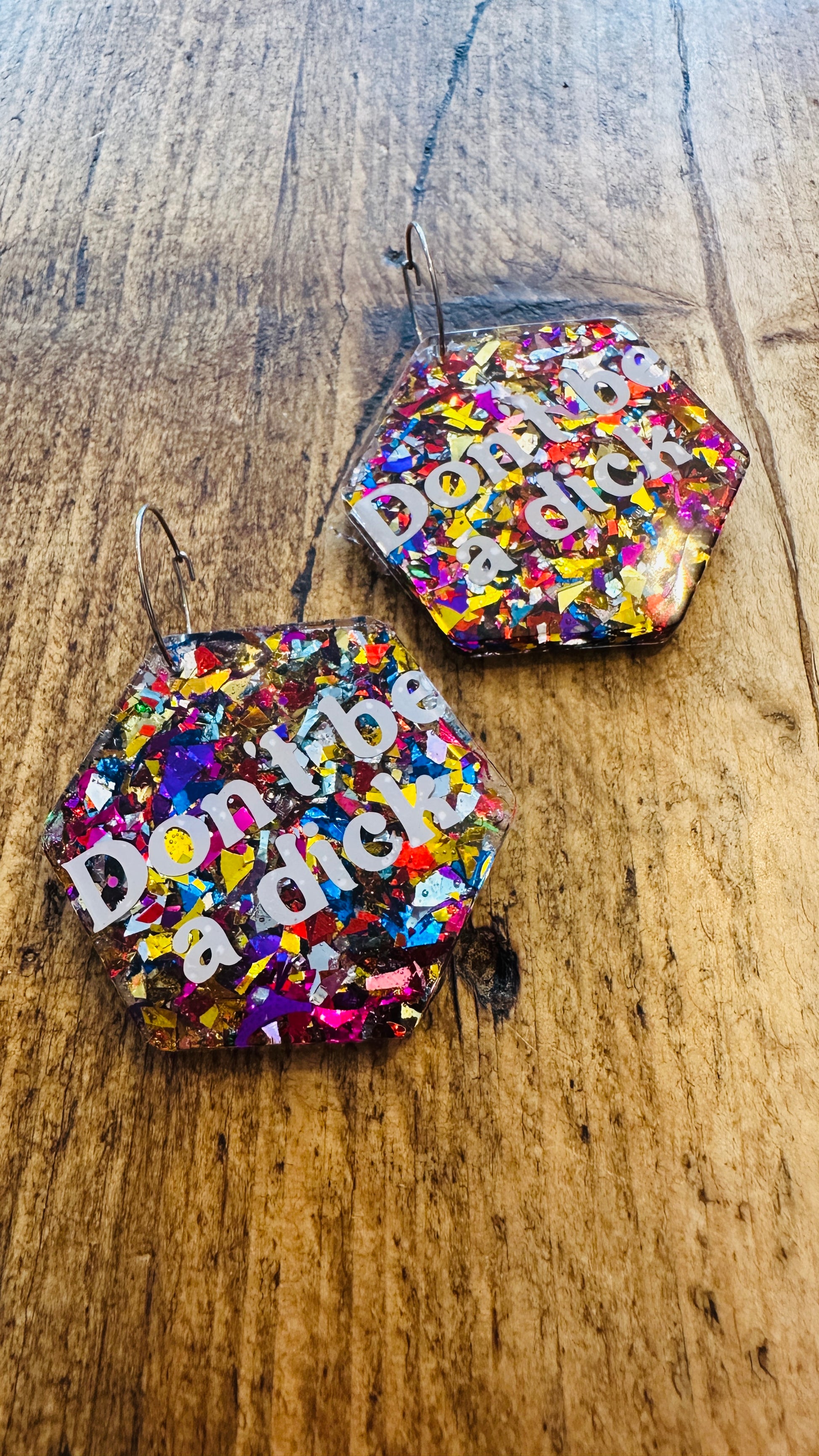 Handmade don’t be a dick earrings! Sterling silver, glitter, sparkle, rude, adult, mature, offensive, sweary