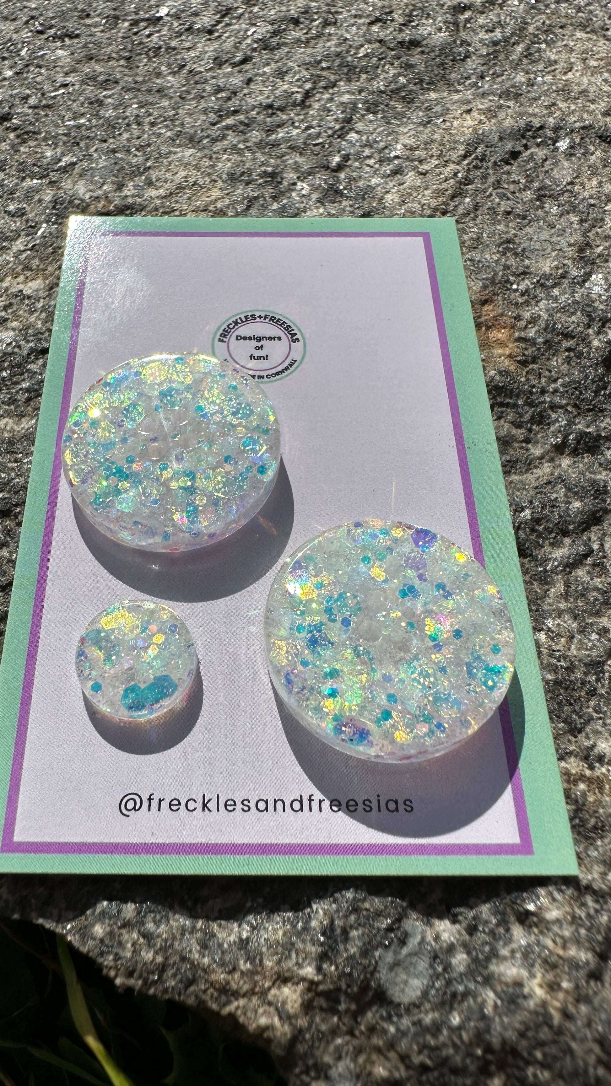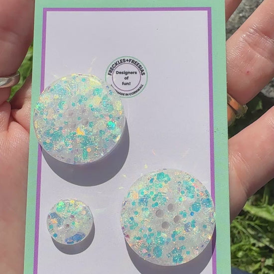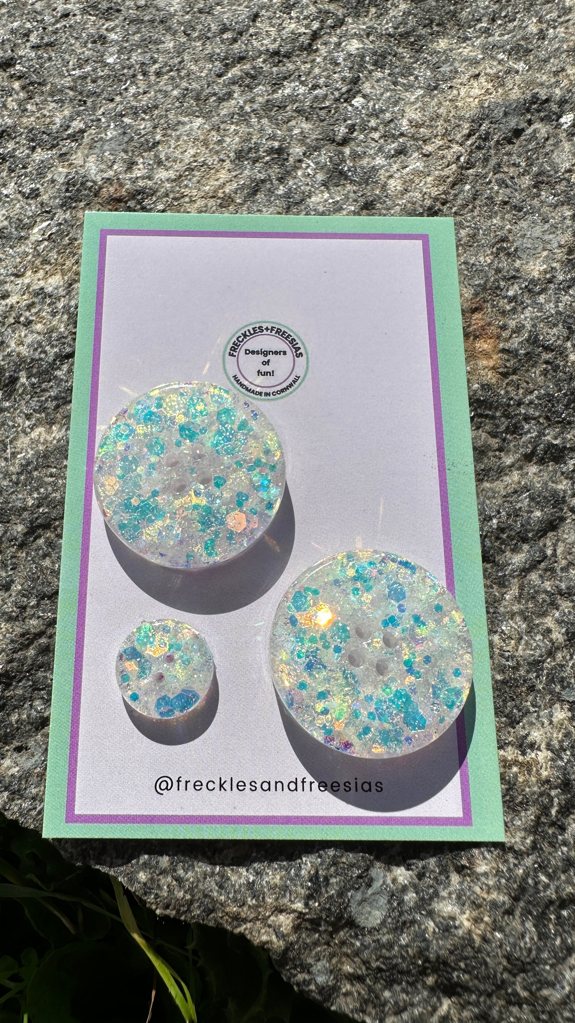 Handmade resin buttons opal white glitter, bright, fun, round, children’s, kids, Aran, 1cm, 1.2cm, 2cm, 2.5cm, 10mm, 12mm, 15mm, 20mm, 25mm