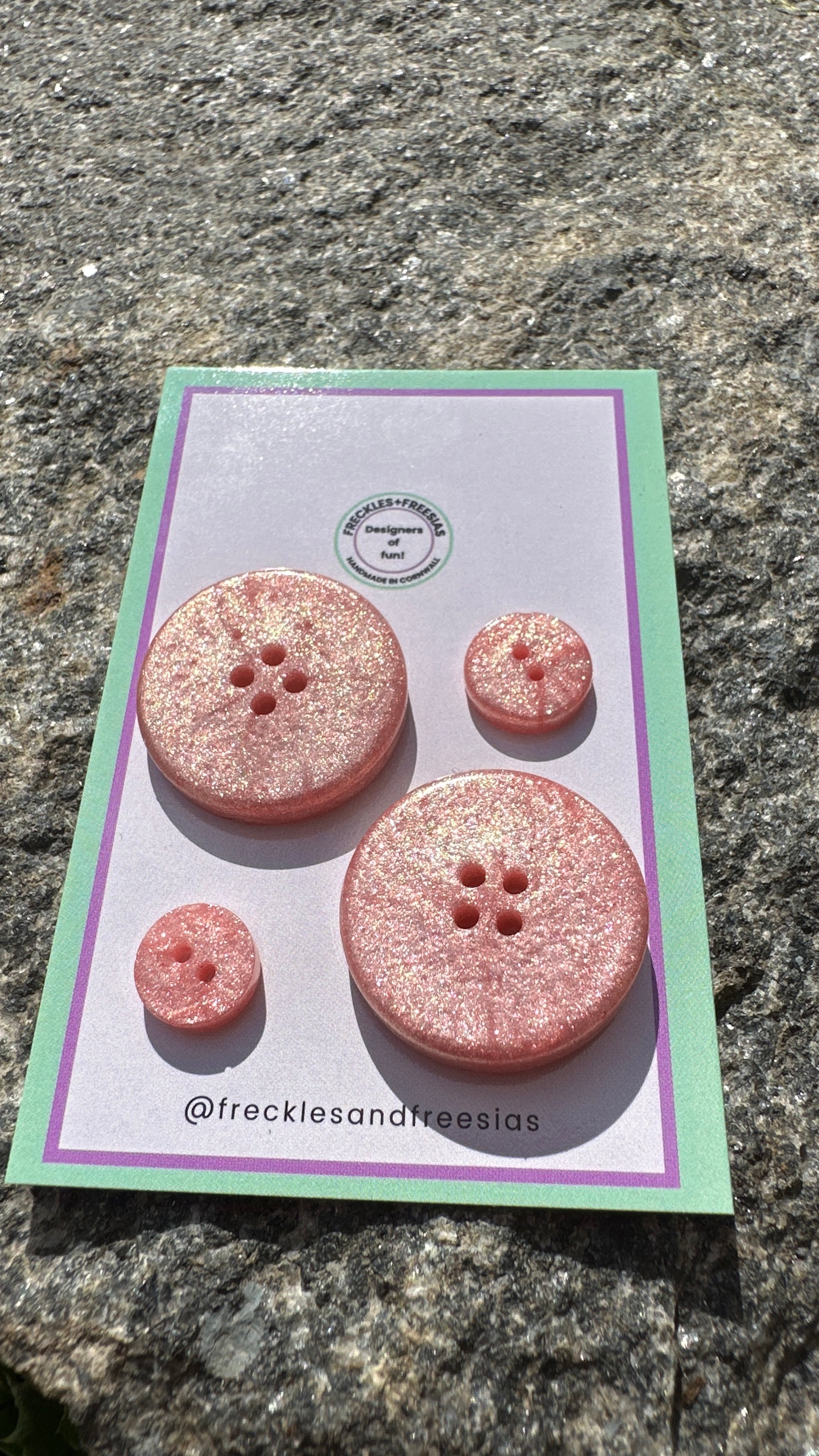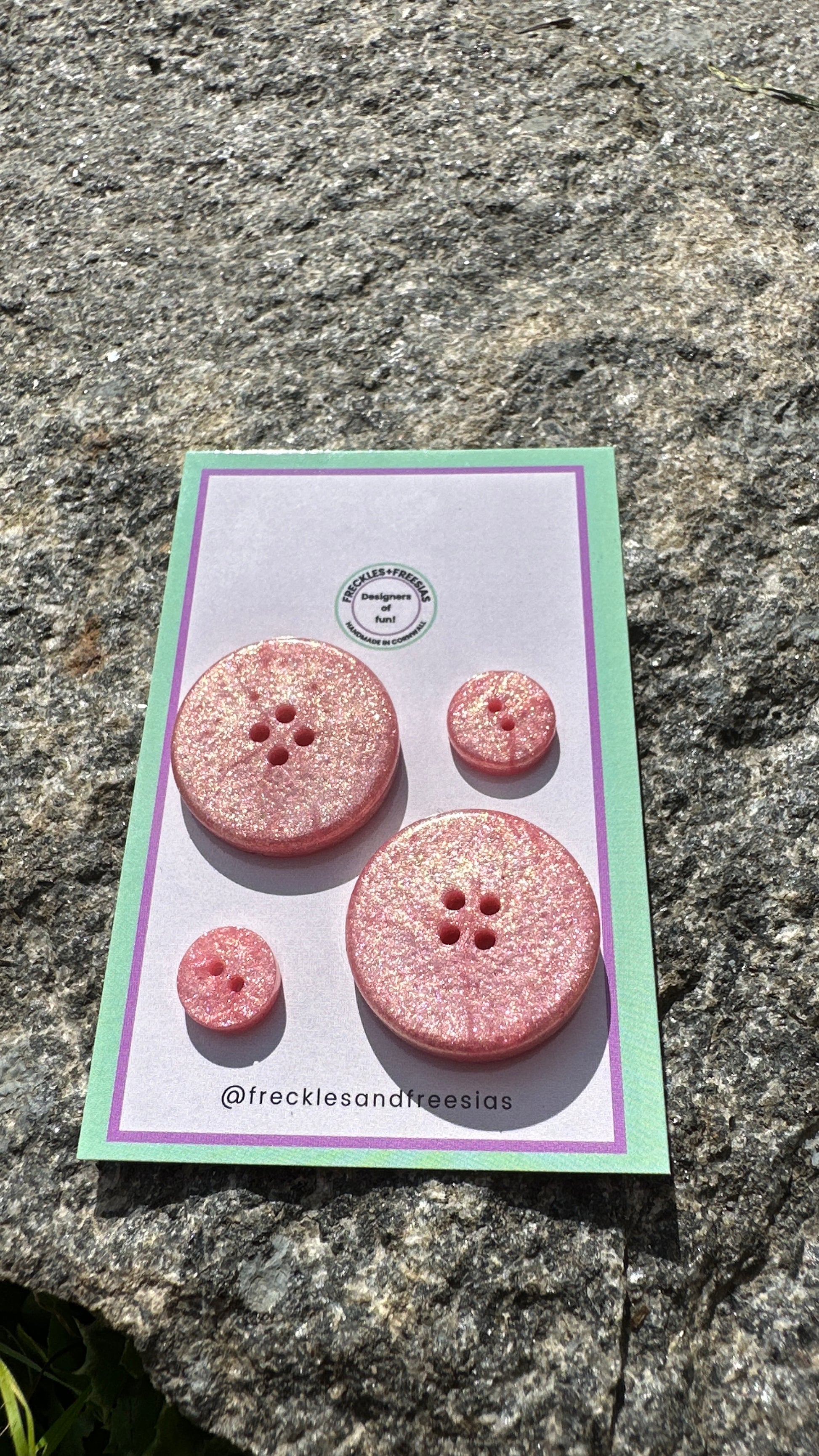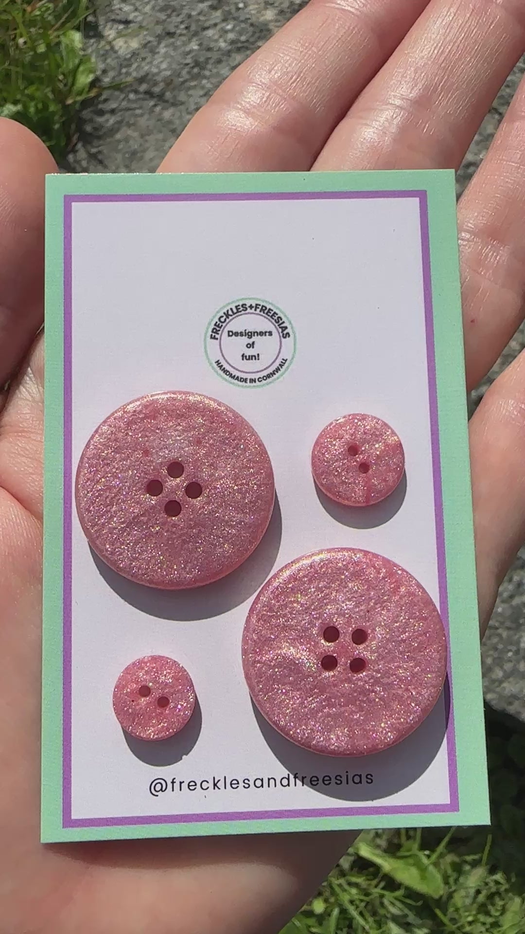 Handmade resin buttons pink pearlescent iridescent, bright, fun, round, children’s, kids, Aran, 1cm, 1.2cm, 2cm, 2.5cm, 10mm, 12mm, 15mm, 20mm, 25mm