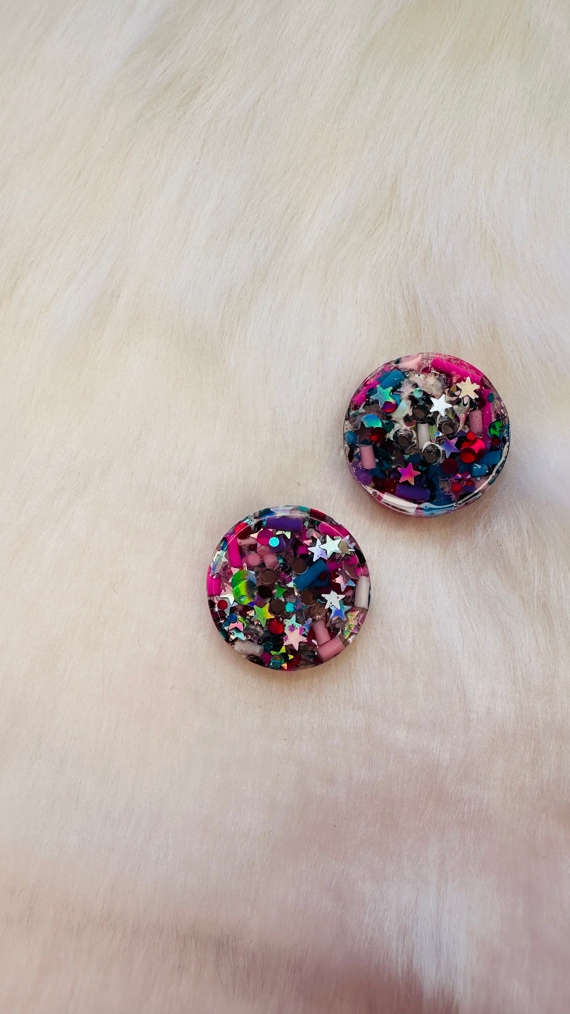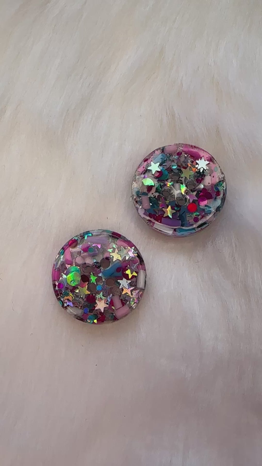 Handmade rainbow sprinkle and hologram star rounds resin glitter buttons. Available in 15mm 20mm, 25mm