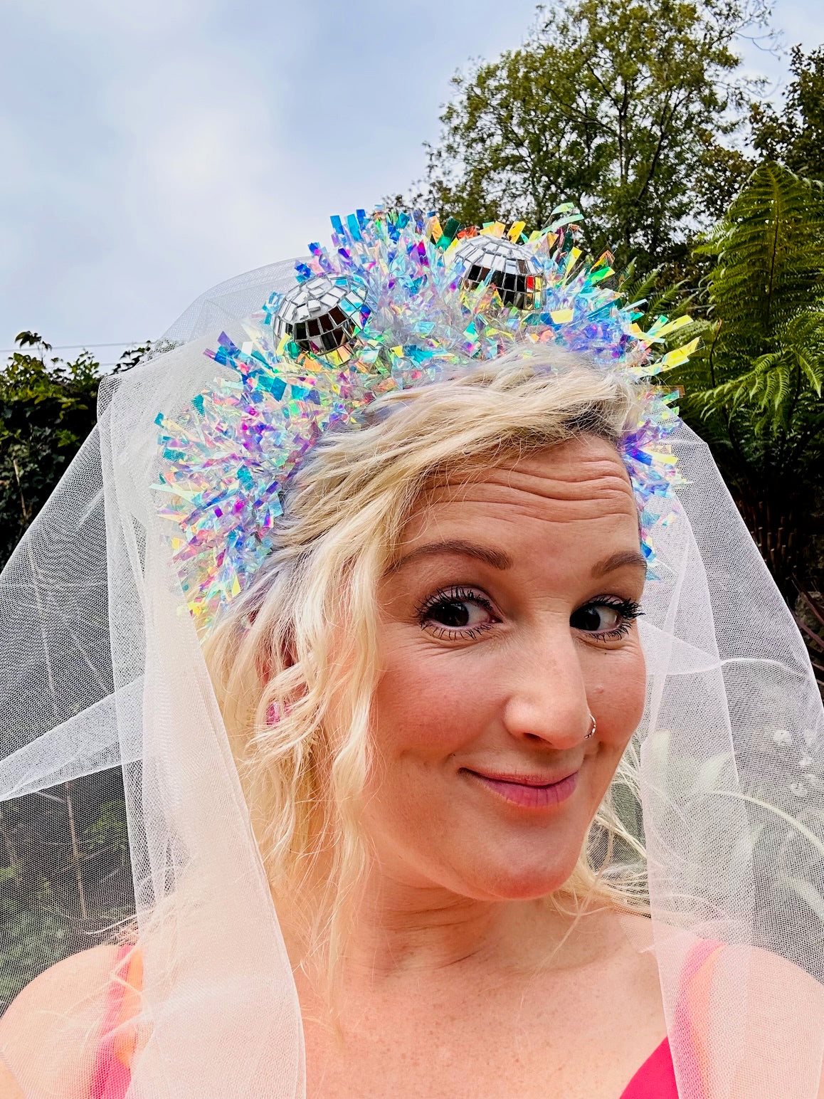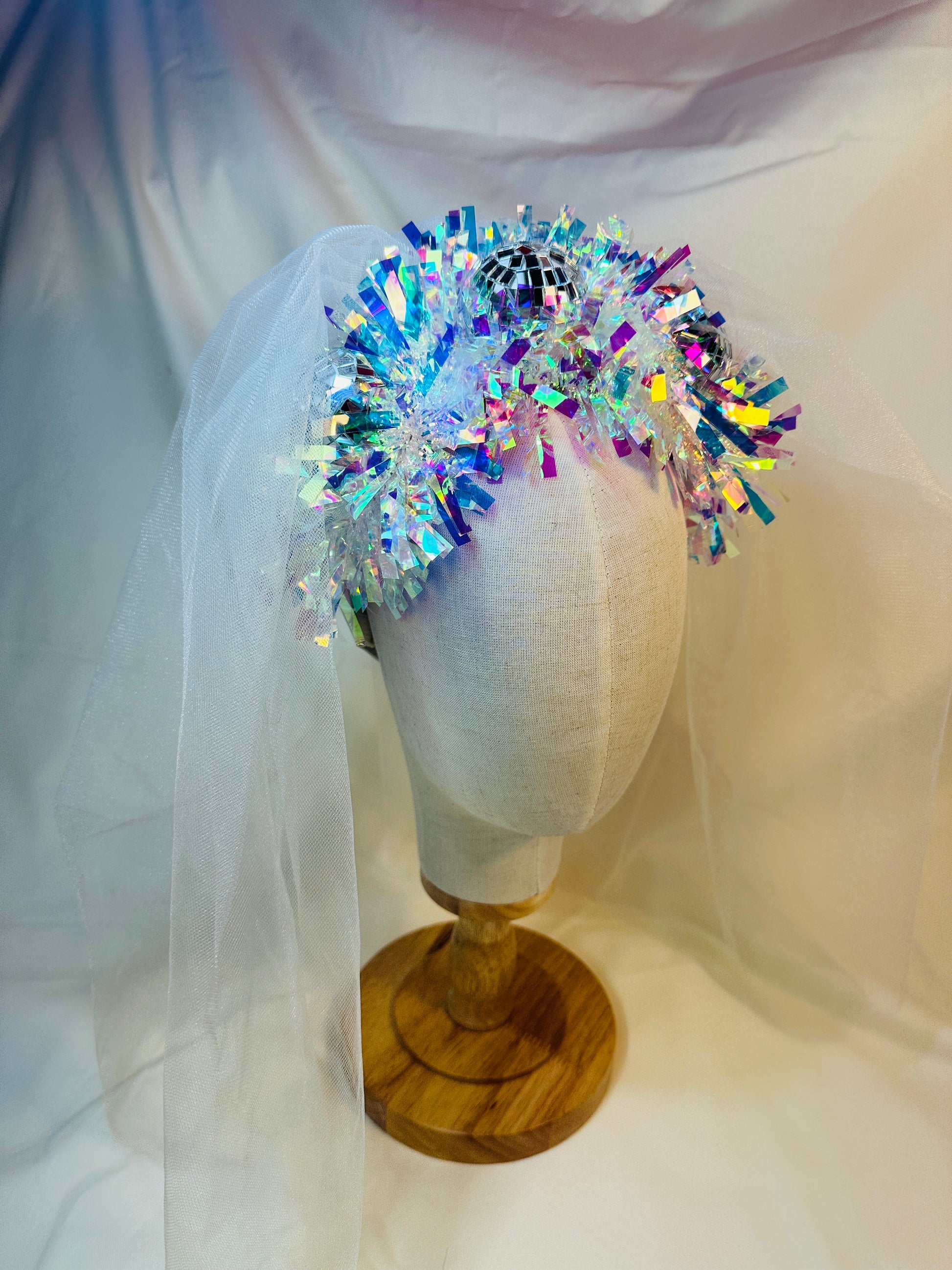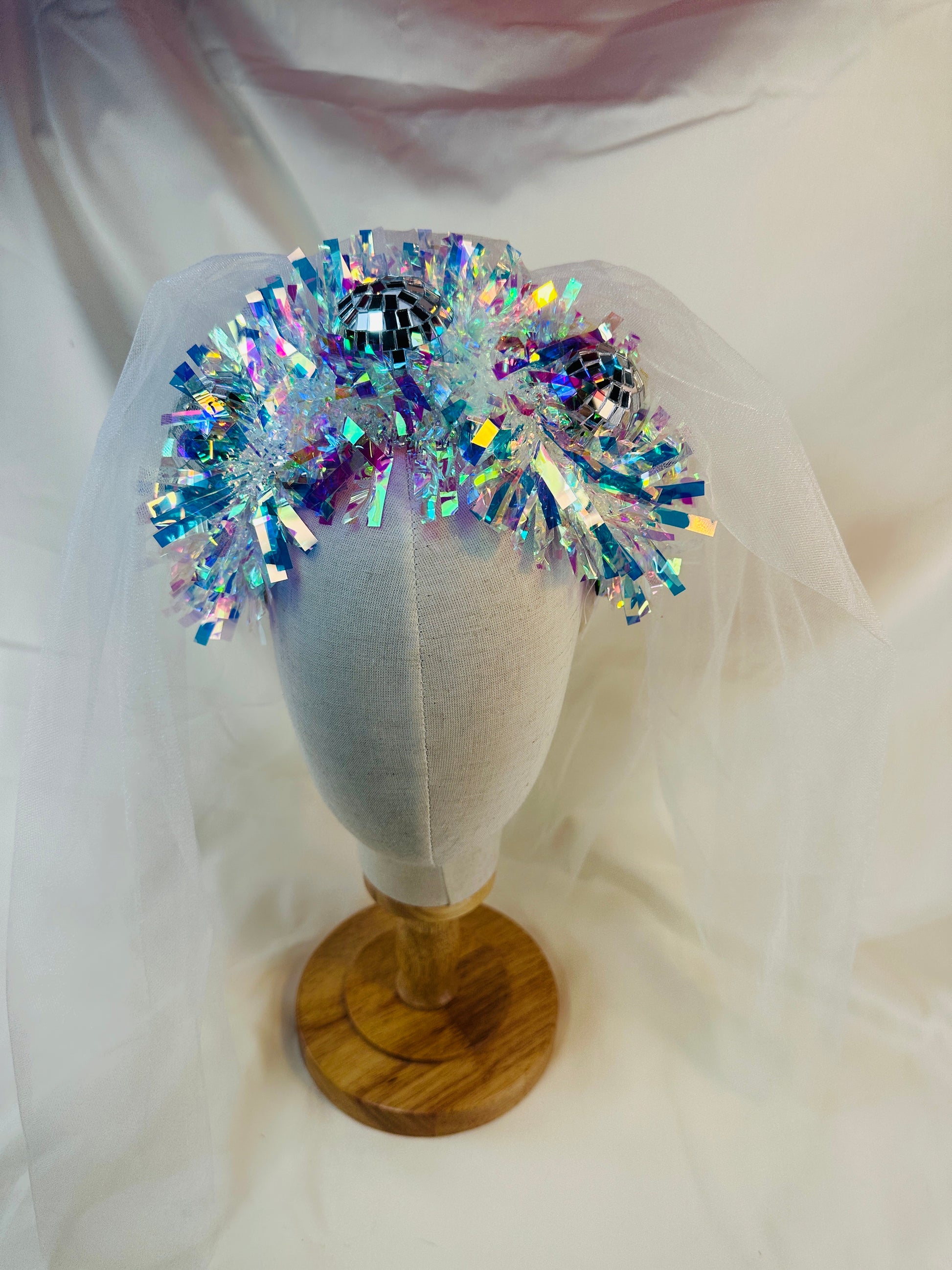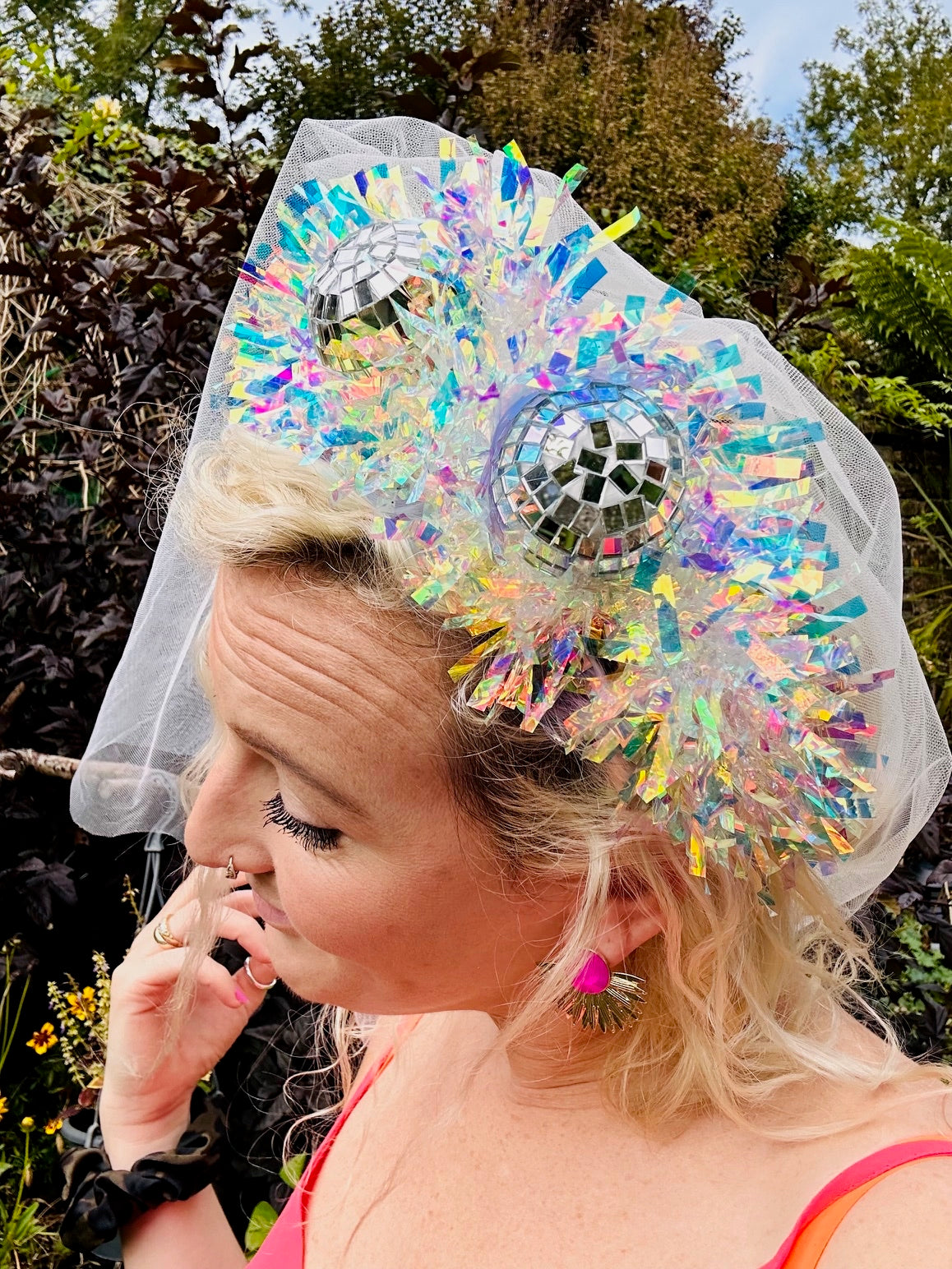Hen do Disco Time headband! Veil, disco balls, bachelorette, party, bride, wedding, iridescent