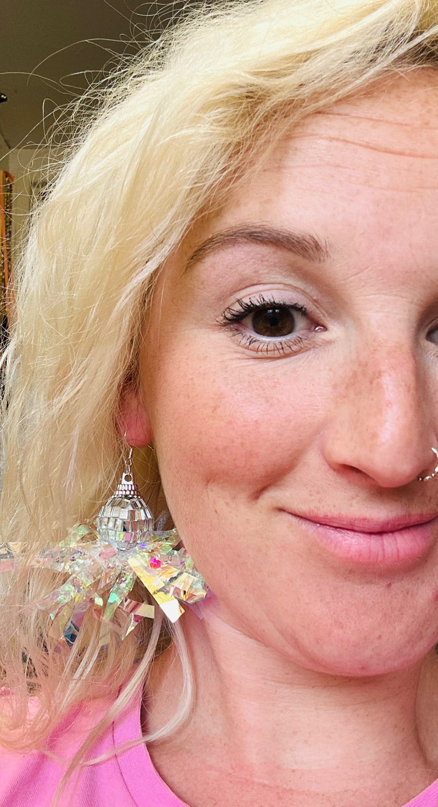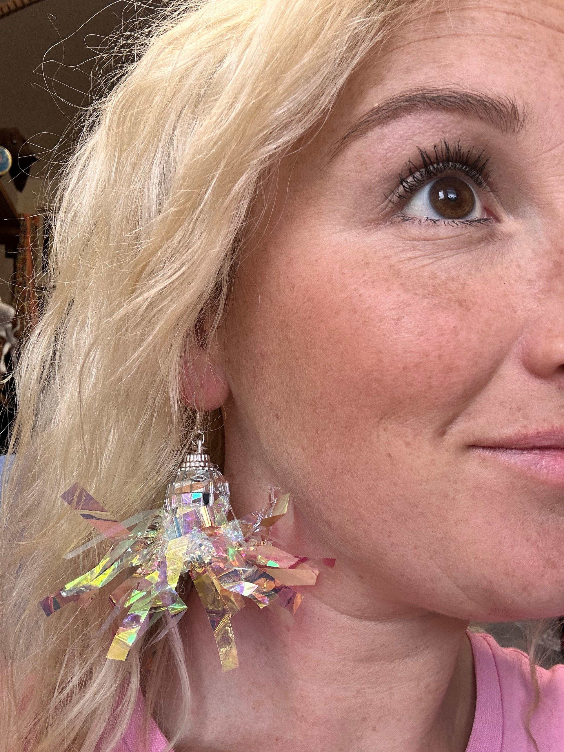 Iridescent disco ball earrings