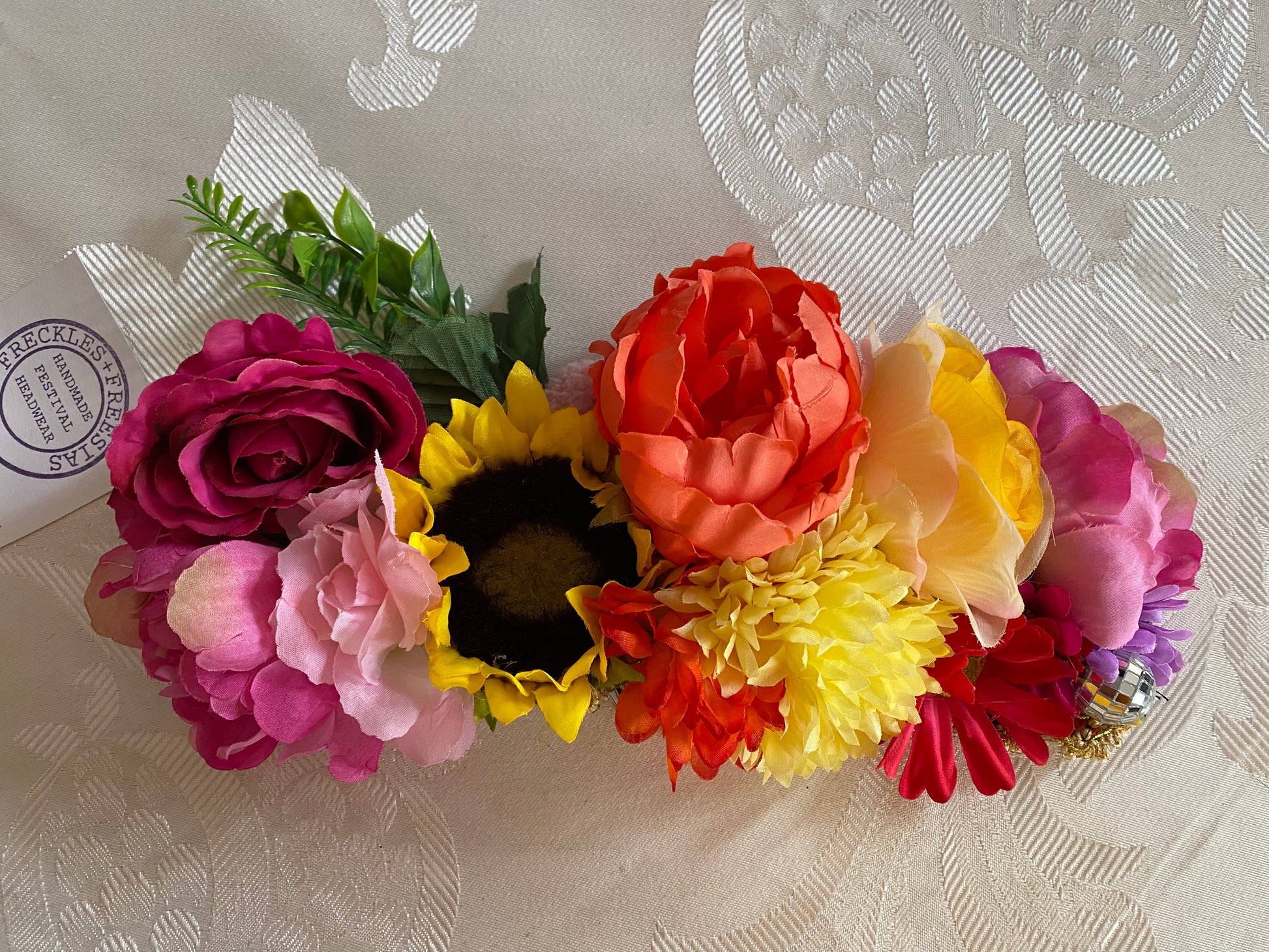 This floral crown is made using high quality bright artificial flowers, think of the spring when those beautiful colours start bursting through!