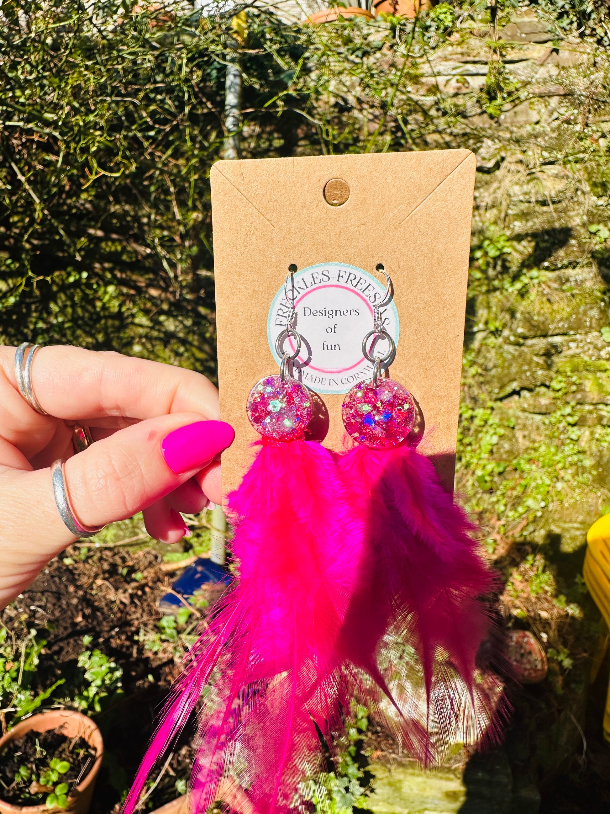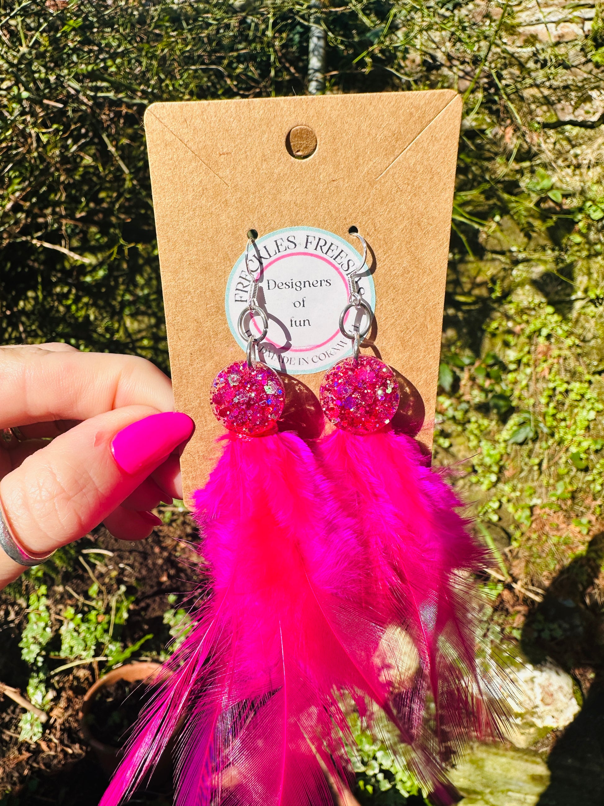 The resin and feathers used are a stunning combination of bright pink and glitter, guaranteed to add sparkle to any outfit ✨